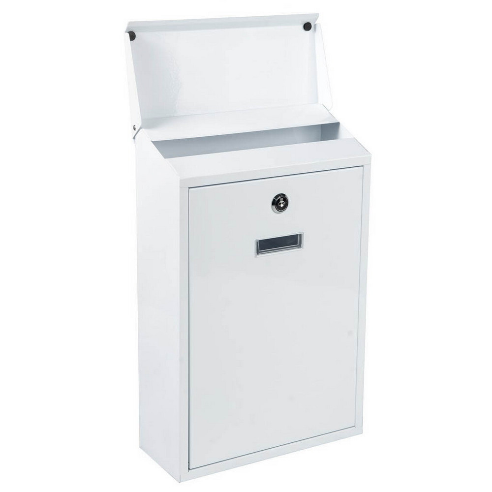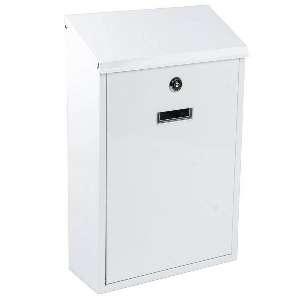 Cutie postala de exterior Planet Safe BG10001 – alba, otel, frontala, montaj pe perete, 400x250x100 mm