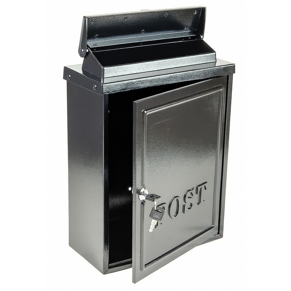 Prevazuta cu deschidere frontala si inchidere cu cheie, cutia postala permite acces rapid si sigur la corespondenta. Dimensiunile sale generoase o fac ideala pentru plicuri si documente format A4, iar finisajul negru mat rezistent la intemperii asigura o integrare estetica pe orice tip de fatada.