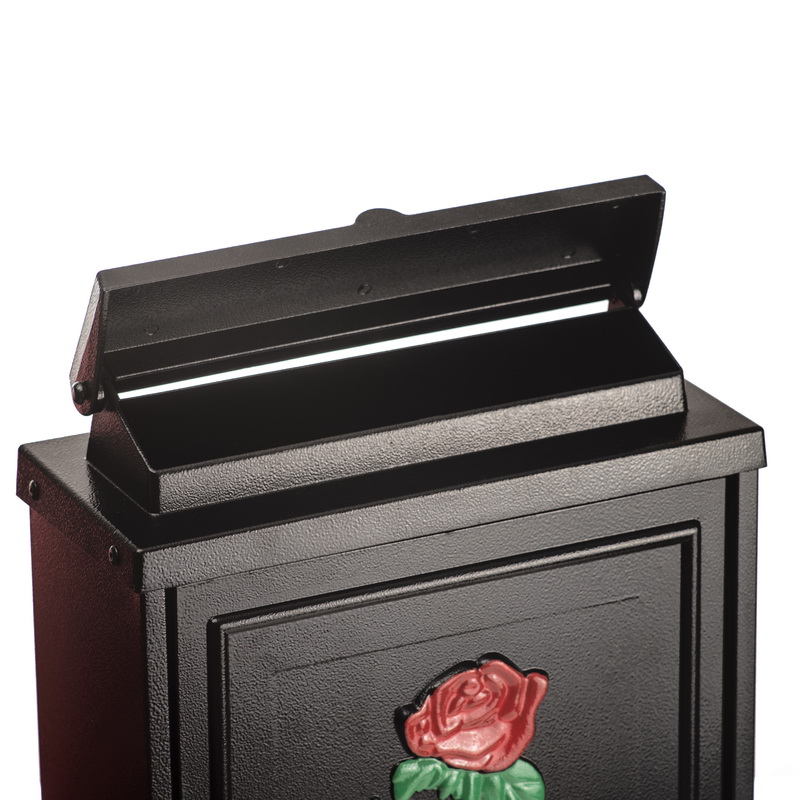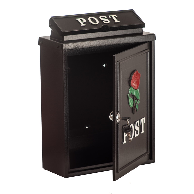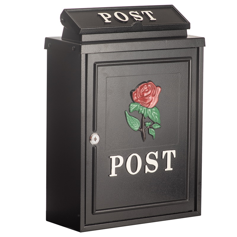 Designul frontal cu model trandafir colorat adauga un accent estetic placut, iar sistemul de inchidere cu cheie asigura securitatea corespondentei. Gaurile de montaj situate pe partea din spate permit fixarea usoara pe perete.