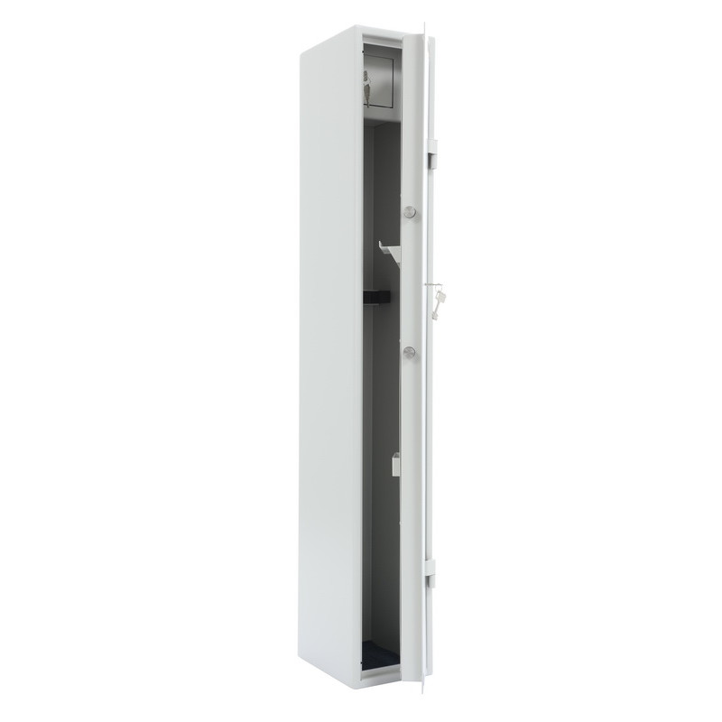 Constructia robusta a corpului si a usii asigura rezistenta impotriva taieturilor, iar bolturi dispuse pe trei directii mentin incuietoarea stabila. Seiful este echipat cu un compartiment interior care permite depozitarea separata a munitiei sau a accesoriilor.