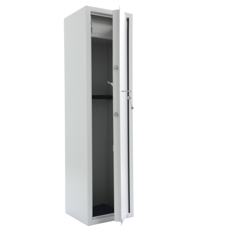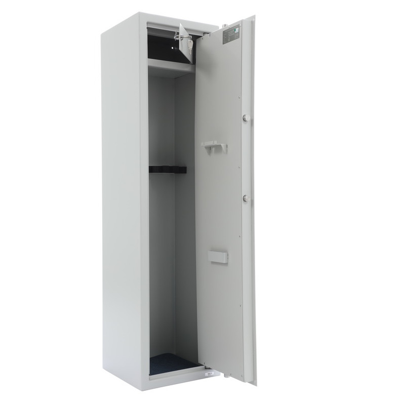 Constructia robusta a corpului si a usii asigura rezistenta impotriva taieturilor, iar bolturi dispuse pe trei directii mentin incuietoarea stabila. Seiful este echipat cu un compartiment interior care permite depozitarea separata a munitiei sau a accesoriilor.