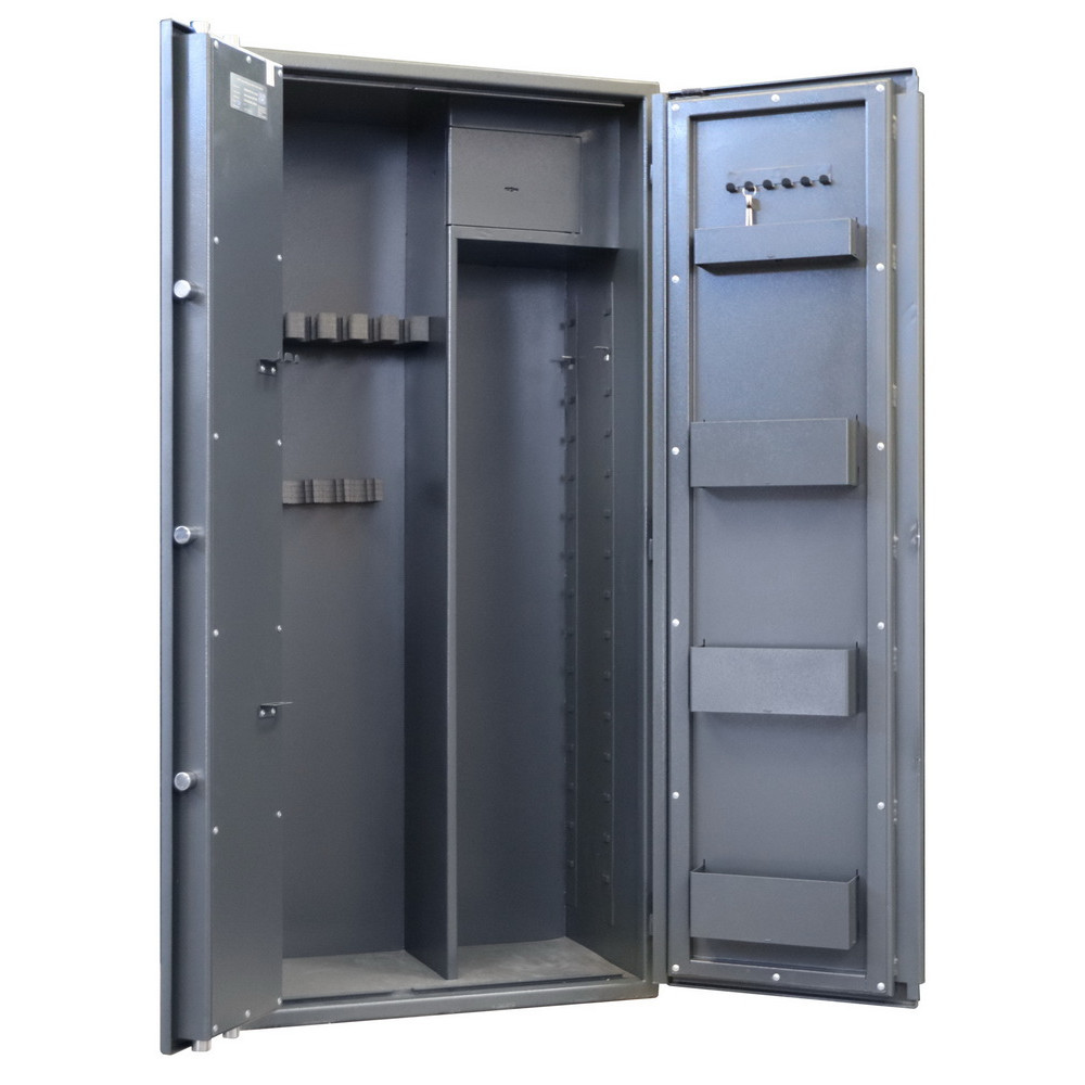 Dulap certificat antiefractie pentru arme lungi, EN 1143-1 Clasa 1, cu inchidere electronica STUV Swinglox VdS Clasa 2 si caseta interioara blocabila. Capacitate 6 arme, otel 20 mm, 195 kg.