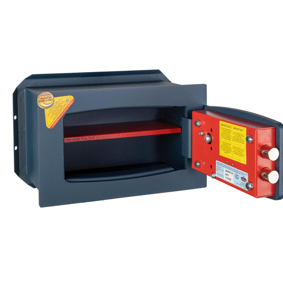 Acest seif de incastrat in perete este echipat cu un sistem dublu de inchidere, format din cheie dubla si cifru mecanic cu 3 discuri. Combinatia dintre structura robusta si inchiderea multipla ofera un nivel superior de securitate, potrivit atat pentru uz rezidential, cat si comercial.