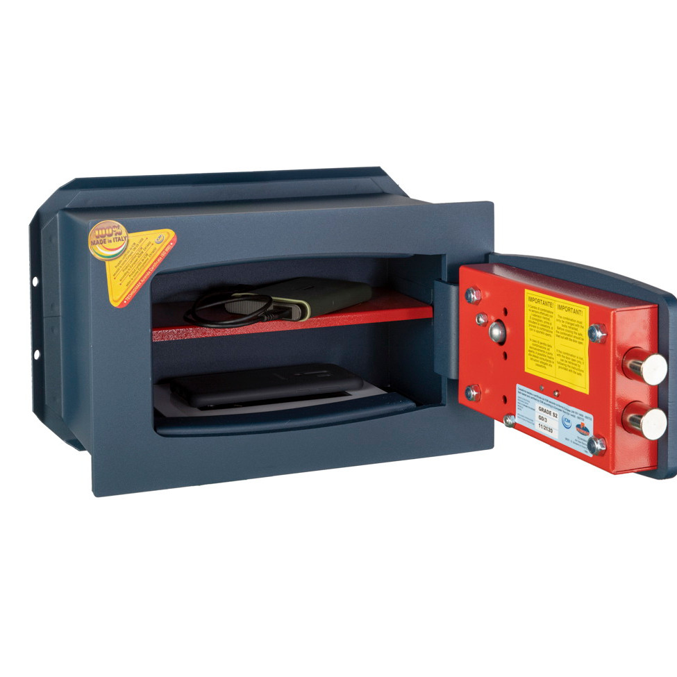 Seif de incastrat in perete cu sistem dublu de inchidere cheie + cifru mecanic, certificat EN 14450-S2