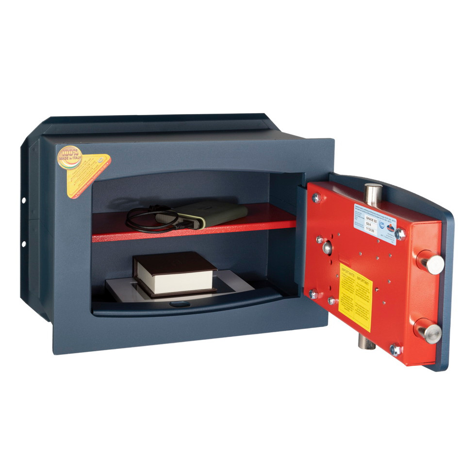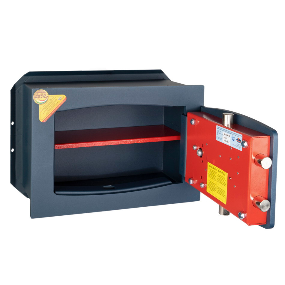 Seif de incastrat in perete cu sistem dublu de inchidere cheie + cifru mecanic, certificat EN 14450-S2