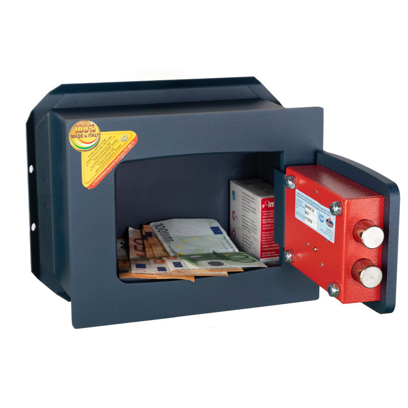 Acest seif de incastrat in perete cu cheie dubla este echipat cu o incuietoare de ultima generatie, special conceputa pentru a rezista tentativelor sofisticate de deschidere ilegala. Combinatia dintre o structura solida si un sistem de inchidere certificat il face ideal pentru utilizare in locuinte sau spatii comerciale.