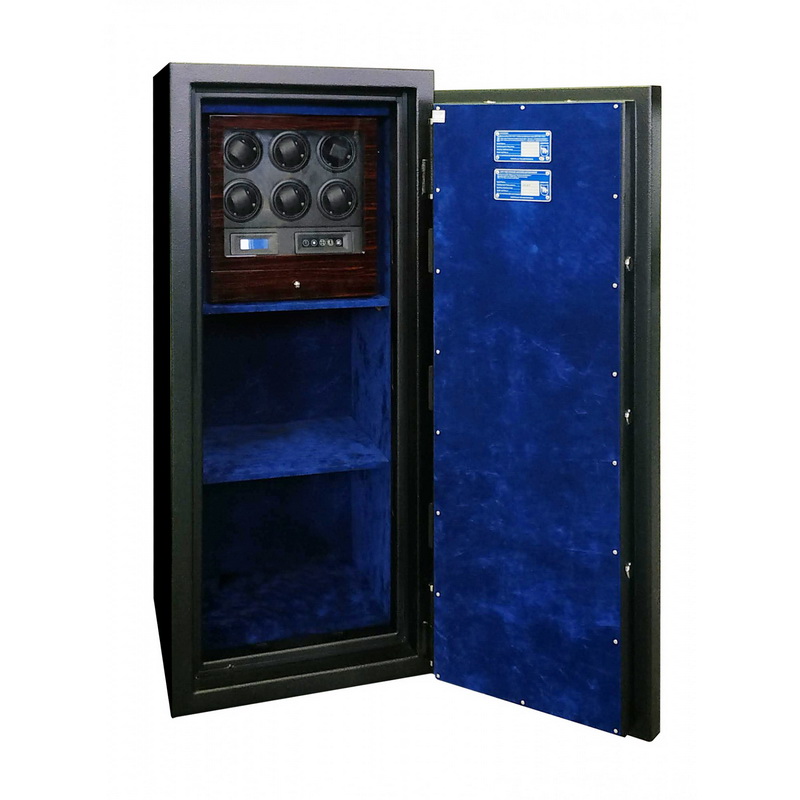 Seiful este echipat cu winder integrat pentru ceasuri, sertar pentru bijuterii si finisaj premium cu piele naturala si iluminare LED, fiind alegerea ideala pentru colectionari si pasionati de lux.