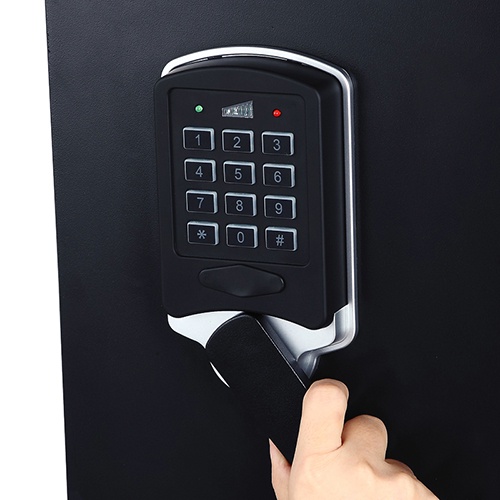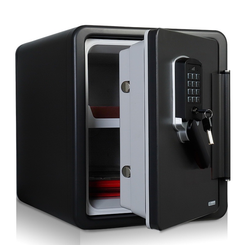 Constructia sa robusta din otel si rasina compozita include inchidere electronica digitala cu tastatura, cheie tubulara de urgenta si 4 bolturi solide pentru siguranta antiefractie. Seiful dispune de tava ajustabila, indicator de baterie, deschidere la 180° si sistem de ancorare la sol, pastrand in acelasi timp integritatea la foc si apa.