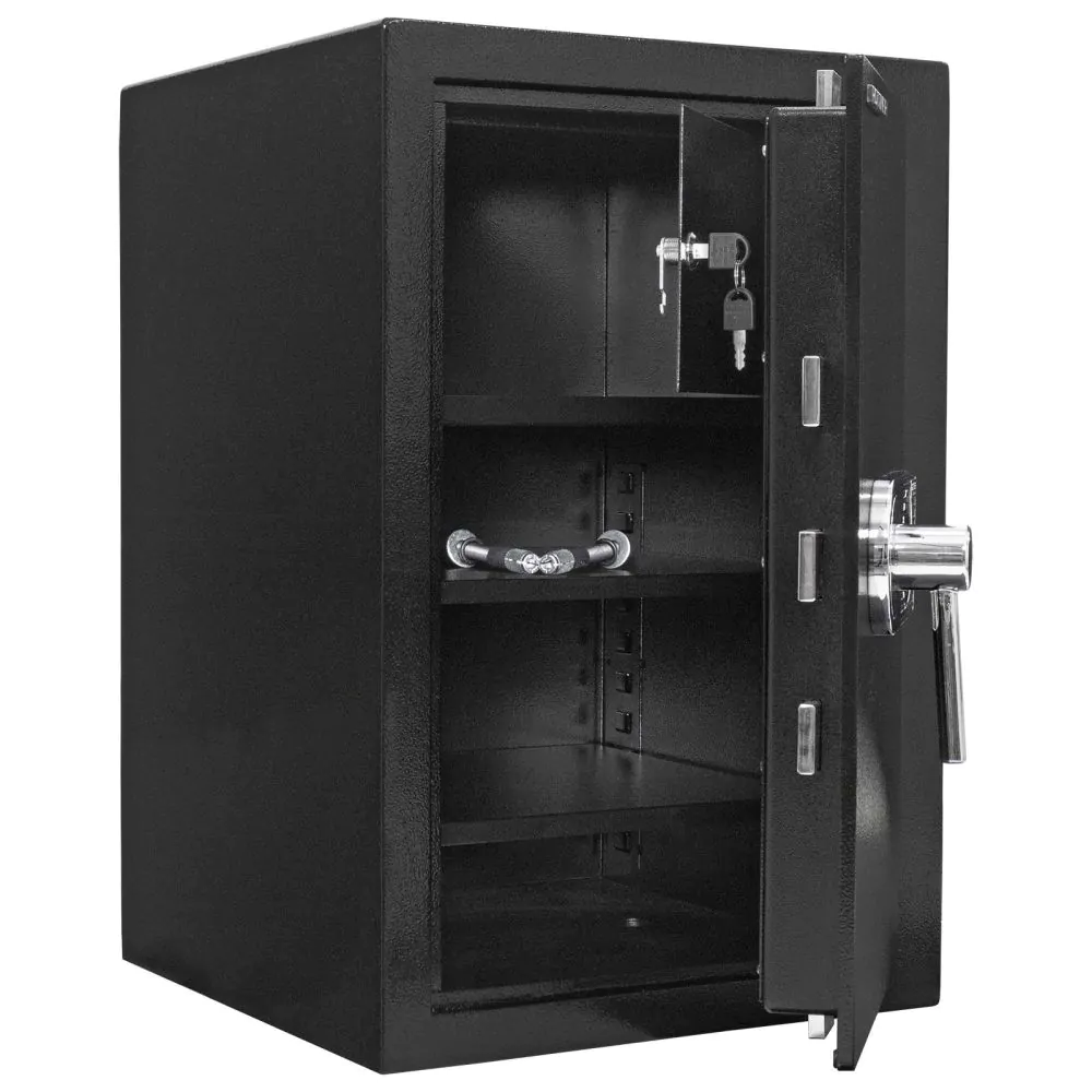Modelul este echipat cu 2 rafturi reglabile si un seif interior fix, blocabil separat, oferind un nivel suplimentar de securitate. Cu un design elegant in finisaj antracit mat, seiful se integreaza perfect atat in spatii rezidentiale, cat si in birouri sau spatii comerciale.