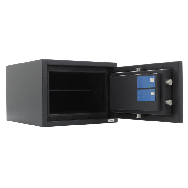 Acest seif ofera combinatia perfecta intre siguranta si functionalitate: protectie antifoc certificata, incuietoare electronica cu temporizare si rezistenta antiefractie de clasa profesionala. Este solutia ideala pentru afaceri care necesita securitate certificata conform normelor legale in vigoare.