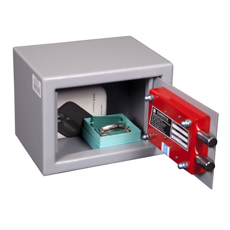 Cu o usa din otel de 2 mm grosime, un corp de 1,5 mm si un sistem de inchidere mecanic cu cheie, seiful L.16.K garanteaza o protectie de baza, fiind potrivit pentru utilizarea zilnica. Designul simplu, in culoare gri RAL 7040, se integreaza usor in orice spatiu.