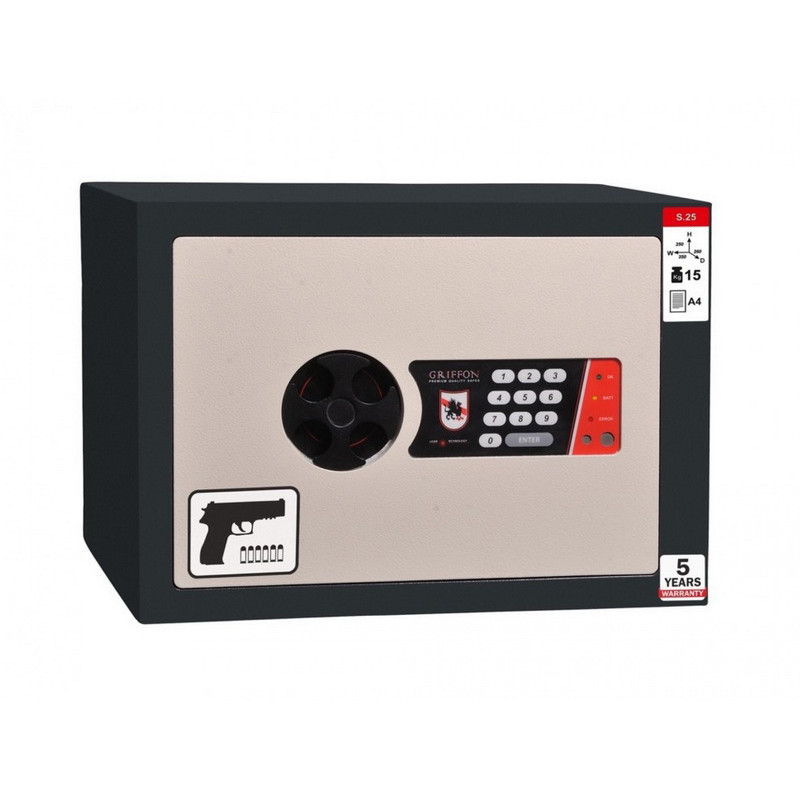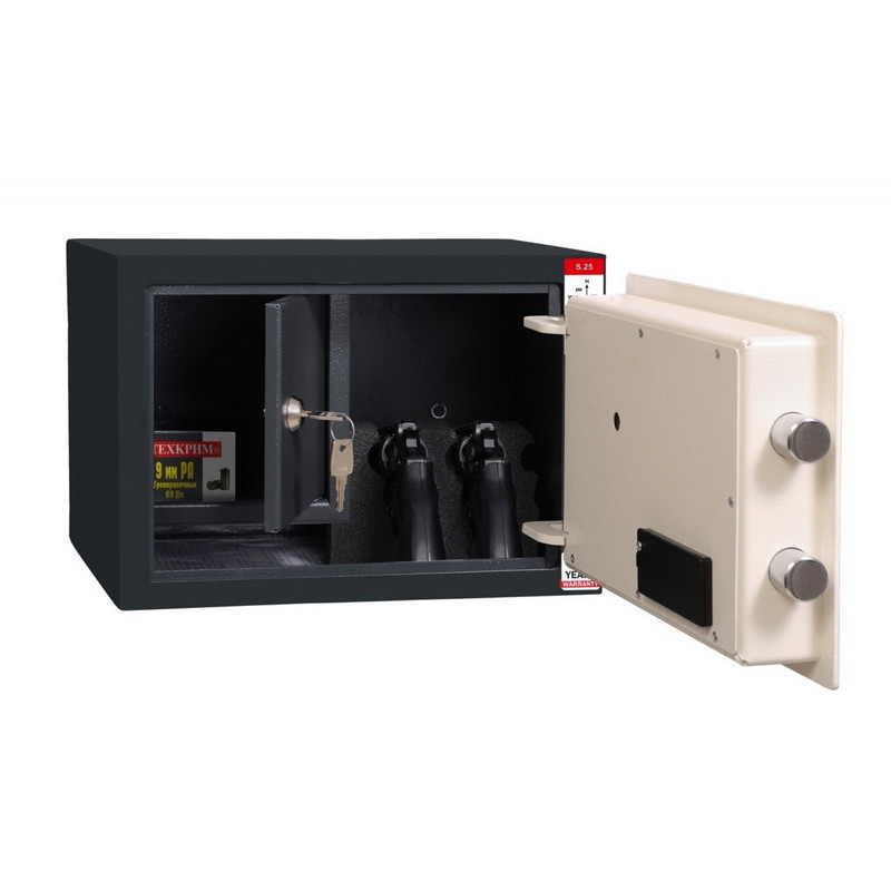 Seiful S.25.EP din seria S este proiectat pentru pastrarea in siguranta a pana la 2 pistoale si a munitiei. Datorita dimensiunilor compacte, poate fi montat discret in mobilierul de acasa sau de la birou, oferind atat siguranta, cat si functionalitate.