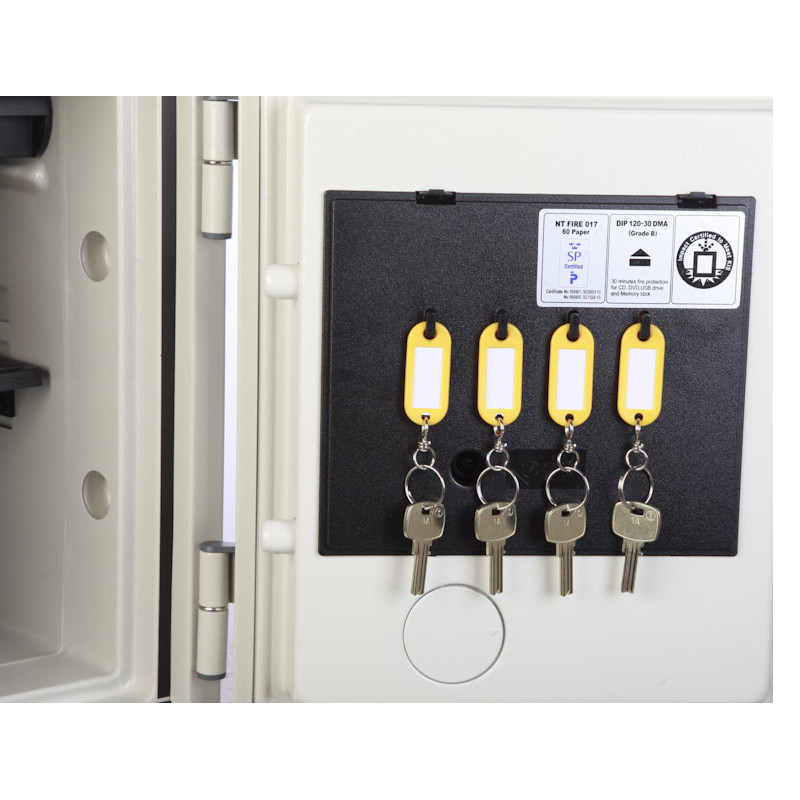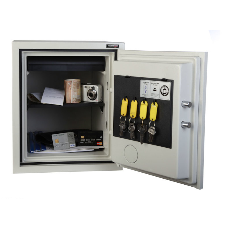 Seiful ignifug pentru hartie cu inchidere cu cheie cu barbie dubla Technofire NGS este proiectat pentru protectia documentelor importante impotriva incendiilor, oferind rezistenta certificata la temperaturi extreme. Modelele din aceasta serie asigura o durata de protectie intre 60 si 120 de minute, mentinand integritatea documentelor chiar si la temperaturi constante de 1010°C.