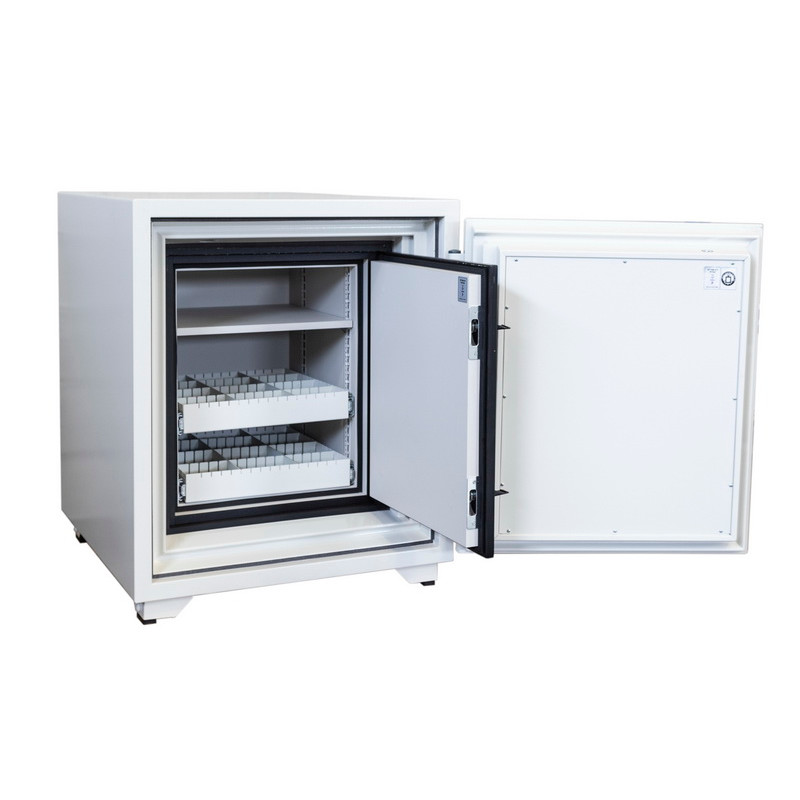 Acest seif antifoc profesional ofera protectie extinsa pentru date digitale si medii magnetice, datorita izolatiei avansate si certificarii EN 1300. Designul practic cu sertare reglabile, rafturi si roti de transport il face ideal pentru companii, birouri IT si arhive ce gestioneaza informatii sensibile.