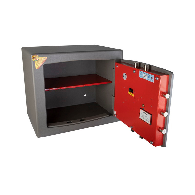 Acest seif combina avantajele unui corp robust cu inchidere electronica certificata EN 1300 si siguranta oferita de standardul european EN 14450 Clasa S1. Este alegerea perfecta pentru locuinte, birouri si companii care doresc sa protejeze documente, numerar sau bijuterii intr-un seif certificat, rezistent si usor de utilizat